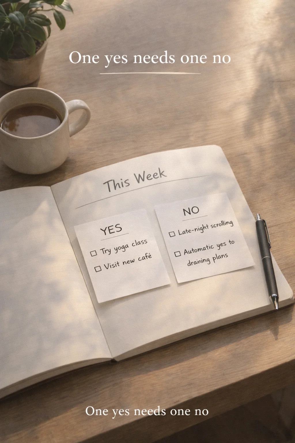 Yes: volunteer once a month. No: no “automatic yes” to optional plans that drain you.